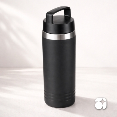 01 Copo plástico com parede dupla Produzido com fibra de trigo e plástico Capacidade de 300ml Alça para transporte e tampa rosqueável Tamanho: 16,5 x 7 cm Gravação: No copo