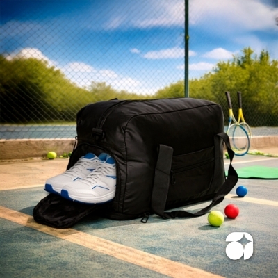 •Sacola esportiva dobrável tecido 210D ripstop com bolso frontal.