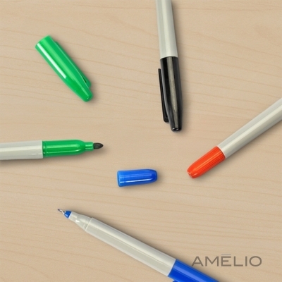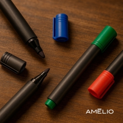 Apresenta símbolo de reciclável na parte traseira da caneta